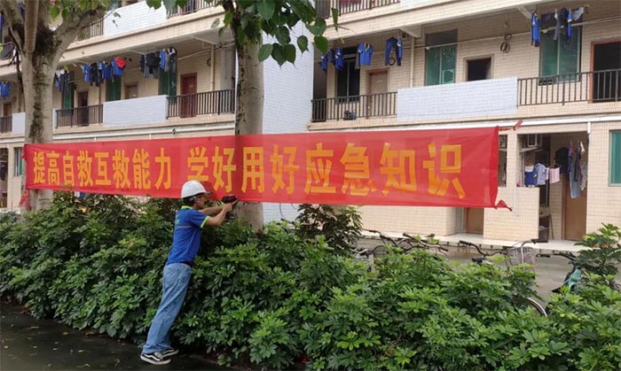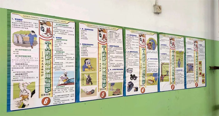 此外,我司在車間、飯?zhí)门c生活區(qū)張貼海報(bào)、橫幅,時(shí)刻向全體員工宣教安全知識(shí),利用LED屏幕與多媒體投屏滾動(dòng)播放安全守則、放映視頻動(dòng)畫,增強(qiáng)全體員工的安全防范意識(shí)。